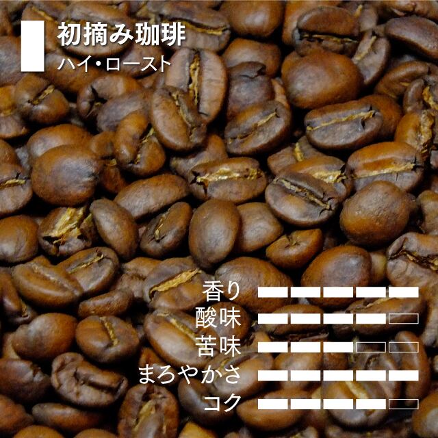 収穫してすぐの「初摘み珈琲」は、カラメル質が多く、新米や新茶と同じように香りが高く甘味を感じます